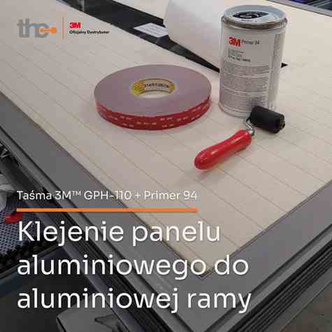 Aby uzyskać maksymalną siłę klejenia, powierzchnie zostały wcześniej przygotowane z wykorzystaniem 3M™ Primer 94, który zwiększa adhezję taśmy do trudnych podłoży.