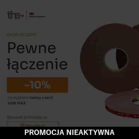 Szukasz rozwiązania, które przyspieszy montaż i zwiększy niezawodność połączeń? 3M VHB Max to taśma konstrukcyjna zaprojektowana do najbardziej wymagających zastosowań – oferuje wyjątkową wytrzymałość na ścinanie do 470 psi oraz natychmiastową wytrzymałość manipulacyjną, dzięki czemu elementy są stabilne od razu po aplikacji. Teraz to rozwiązanie jest jeszcze bardziej opłacalne – od stycznia do 27 lutego 2026 r. taśmy 3M VHB Tape Max są dostępne z rabatem –10%. To idealny moment, aby przetestować VHB Max w nowych projektach lub wdrożyć ją szerzej w produkcji, obniżając jednocześnie koszty. Jak działa promocja? Dodatkowy rabat –10% naliczany jest od cen na stronie thc.gda.pl: automatycznie do zamówień online ręcznie przy zamówieniach offline (mailowych/stacjonarnych) Okres składania zamówień: styczeń– 27 luty 2026, Oferta nie obowiązuje przy cenach specjalnych ani indywidualnych warunkach handlowych Masz pytania? Napisz do nas!📧 zamowieniab2b@thc.gda.pl Produkty objęte promocją: Max 060GF12mm x 33m 0,6mm szara 710039548319mm x 33m 0,6mm szara 710039543025mm x 33m 0,6mm szara 7100395503 Max 110GF12mm x 33m 1,1mm szara 710039543219mm x 33m 1,1mm szara 710039550425mm x 33m 1,1mm szara 7100395474 Max 160GF 12mm x 33m 1,6mm szara 710039554419mm x 33m 1,6mm szara 710039543825mm x 33m 1,6mm szara 7100395593 Max 230GF12mm x 22m 2,3mm szara 710039544419mm x 22m 2,3mm szara 710039541525mm x 22m 2,3mm szara 7100395484 Nie wiesz, który wariant będzie odpowiedni w twoim projekcie? Skontaktuj się z doradcą technicznym const pageContent=document.getElementById("page-content");if(pageContent){const a=pageContent.querySelectorAll("[class]");a.forEach(l=>{let c=l.className;c=c.replace("col-12 col-sm-6 col-md-6 col-lg-8 col-xl-8","col-12"),c=c.replace("col-12 col-sm-6 col-md-6 col-lg-4 col-xl-4","col-12"),c!==l.className&&(l.className=c)})}
