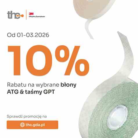 Od stycznia do końca marca 2026 r. trwa promocja na wybrane błony ATG oraz taśmy dwustronne 3M GPT. To dobra okazja, aby uzupełnić zapasy sprawdzonych materiałów klejących stosowanych w montażu, produkcji oraz pracach przemysłowych – teraz 10% taniej. Jak działa promocja? Rabat –10% naliczany jest od cen na thc.gda.pl: automatycznie przy zamówieniach online ręcznie przy zamówieniach offline (mailowych/ stacjonarnych) Promocja obowiązuje w okresie styczeń – 30 marzec 2026, Oferta nie dotyczy cen specjalnych ani indywidualnych warunków handlowych, Warunkiem jest zamówienie ilości MOQ¹, Promocja obejmuje wyłącznie produkty wskazane poniżej. Pełna lista produktów objętych promocją: Błony ATG: 3M ATG 904, 924, 926, 928, 969, 976 Taśmy dwustronne: 3M GPT 020, GPT 020F, GPT 020TF Aplikatory ATG Brak produktu, który Cię interesuje?Napisz do nas: zamowieniab2b@thc.gda.pl – sprawdzimy dostępność i przygotujemy ofertę. ¹ MOQ - minimalna ilość zamówienia (Minimal Order Quantity) Lista produktów objętych promocją: ATG 904ATG904 7000042431 YP208050937 12 mm x 33 m; MOQ = 12 szt.ATG904 7000116675 YP208051893 12 mm x 44 m; MOQ = 72 szt.ATG904 7000116672 YP208051869 19 mm x 44 m; MOQ = 48 szt.ATG904 7000116673 YP208051877 6 mm x 44 m; MOQ = 48 szt. ATG 924ATG924 7000042428 YP208050473 12 mm x 33 m; MOQ = 72 szt.ATG924 7000116639 YP208051364 19 mm x 55 m; MOQ = 48 szt.ATG924 7000116593 YP208050481 19 mm x 33 m; MOQ = 48 szt.ATG924 7000116591 YP208050457 6 mm x 33 m; MOQ = 72 szt.ATG924 7000116658 YP208051596 6 mm x 55 m; MOQ = 48 szt.ATG924 7000116638 YP208051356 12 mm x 55 m; MOQ = 72 szt.ATG 926 / 928 / 969 / 976ATG926 7000116644 YP208051414 12 mm x 33 m; MOQ = 72 szt.ATG926 7100140019 UU009012160 19 mm x 33 m; MOQ = 48 szt.ATG926 7000116661 YP208051620 6 mm x 33 m; MOQ = 48 szt.ATG928 7000028874 70006079886 12 mm x 16 m; MOQ = 72 szt.ATG928 7100016838 70006117116 12mm x 33 m; MOQ = 72 szt.ATG928 7000048496 70006079878 19 mm x 16 m; MOQ = 48 szt.ATG969 7000116652 YP208051513 12 mm x 16.5; m; MOQ = 72 szt.ATG969 7000116642 YP208051398 12 mm x 33 m; MOQ = 72 szt.ATG969 7000116653 YP208051521 19 mm x 16.5 m; MOQ = 48 szt.ATG969 7000116643 YP208051406 19 mm x 33 m; MOQ = 48 szt.ATG969 7000116611 YP208050697 6 mm x 16.5 m; MOQ = 72 szt.ATG969 7000116660 YP208051612 6 mm x 33 m; MOQ = 48 szt.ATG976 7000116659 YP208051604 6 mm x 55 m; MOQ = 48 szt.ATG976 7000116640 YP208051372 12 mm x 55 m; MOQ = 72 szt.ATG976 7000116641 YP208051380 19 mm x 55 m; MOQ = 48 szt. ApplikatoryATG Applicator Kit 7000031200 78811408273 MOD 19600 – MOQ = 6 szt. ATG Applicator 7000031204 78811409123 ATG700EU – MOQ =1 szt.GPT‑020 / GPT‑020F / GPT‑020TFGPT‑020 7100369936 UU013581424 1000 mm x 50 m; MOQ = 1 szt.GPT‑020 7100369698 UU013570559 12 mm x 50 m; MOQ = 20 szt.GPT‑020 7100369857 UU013569890 1540 mm x 50 m; MOQ = 1 szt.GPT‑020 7100369880 UU013578206 15 mm x 50 m; MOQ = 16 szt.GPT‑020 7100370006 UU013578297 19 mm x 50 m; MOQ = 16 szt.GPT‑020 7...